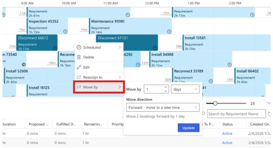 Het is mogelijk om meerdere boekingen te selecteren en collectief te verplaatsen naar een ander dag of tijdstip. Buiten deze tijdstipwijzigingen is het collectief wijzigen van een uitvoerder ook mogelijk.