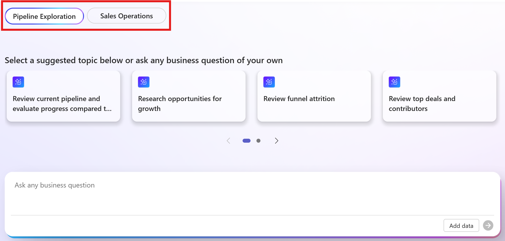 - Meerdere onderzoeksroutes opzetten over zowel Dynamics 365 Sales data als Fabric lakehouse data, en je analyse verrijken met lokale bestanden zoals Excel of PDF.